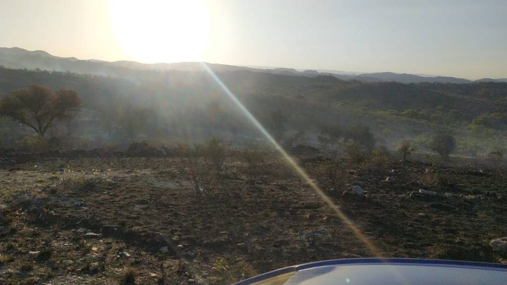 Asimismo, según lo informado por fuentes oficiales, el fuego afectó un aproximado de 100 hectáreas de monte y pastizales.