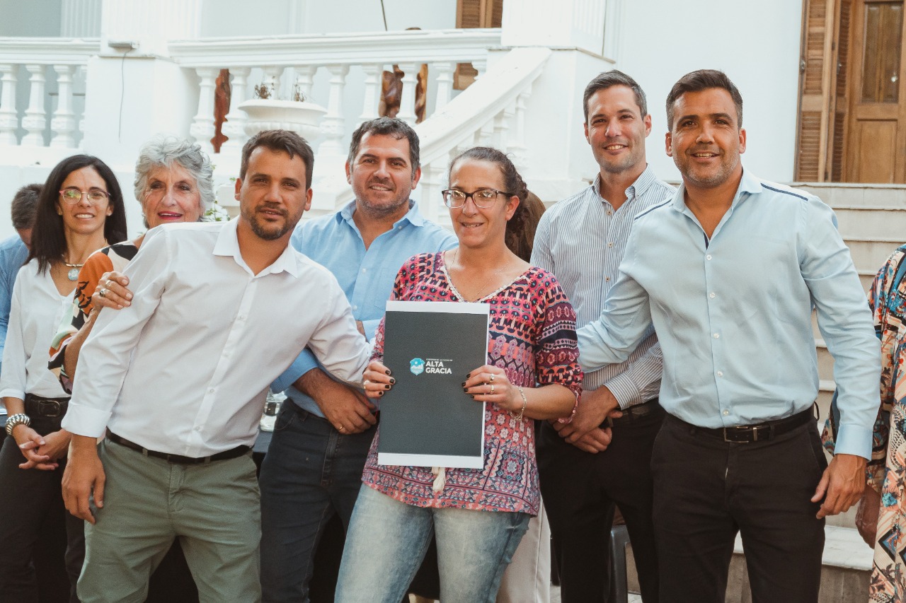 Gracias a la gestión y acompañamiento constante del Gobierno de la Ciudad de Alta Gracia, más el trabajo mancomunado entre vecinos, cooperativa y gobierno provincial, se logró hacer entrega de las primeras escrituras, hecho de suma importancia para los integrantes de las familias, ya que la obtención del título de propiedad garantiza a los beneficiarios que cuentan con la seguridad jurídica de la propiedad de su casa.