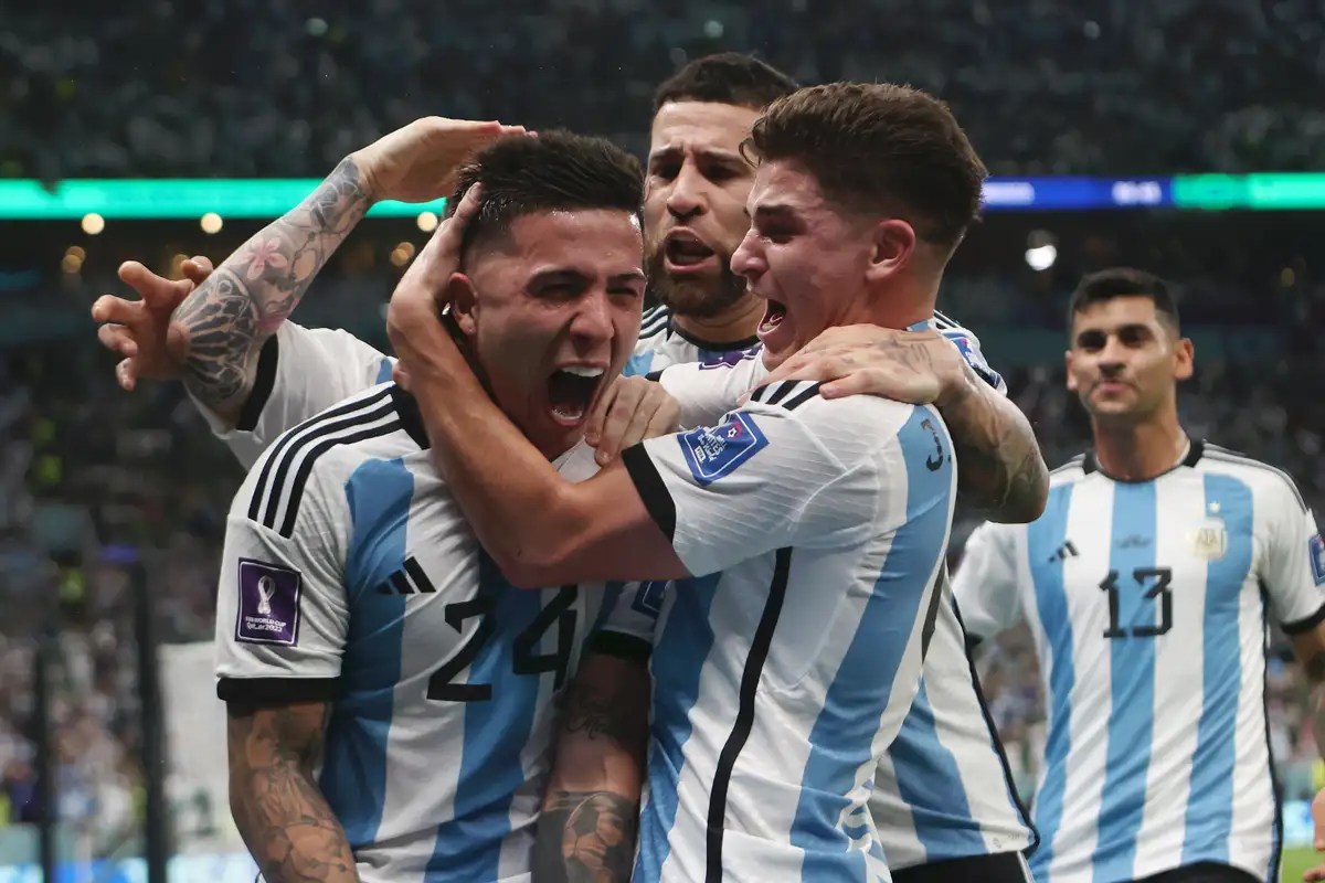El capitán Lionel Messi y el ingresado mediocampista Enzo Fernández, en una noche consagratoria, marcaron los goles a los 19 y 42 minutos del segundo tiempo del partido en el Estadio Lusail, al que asistieron más de 80 mil espectadores.