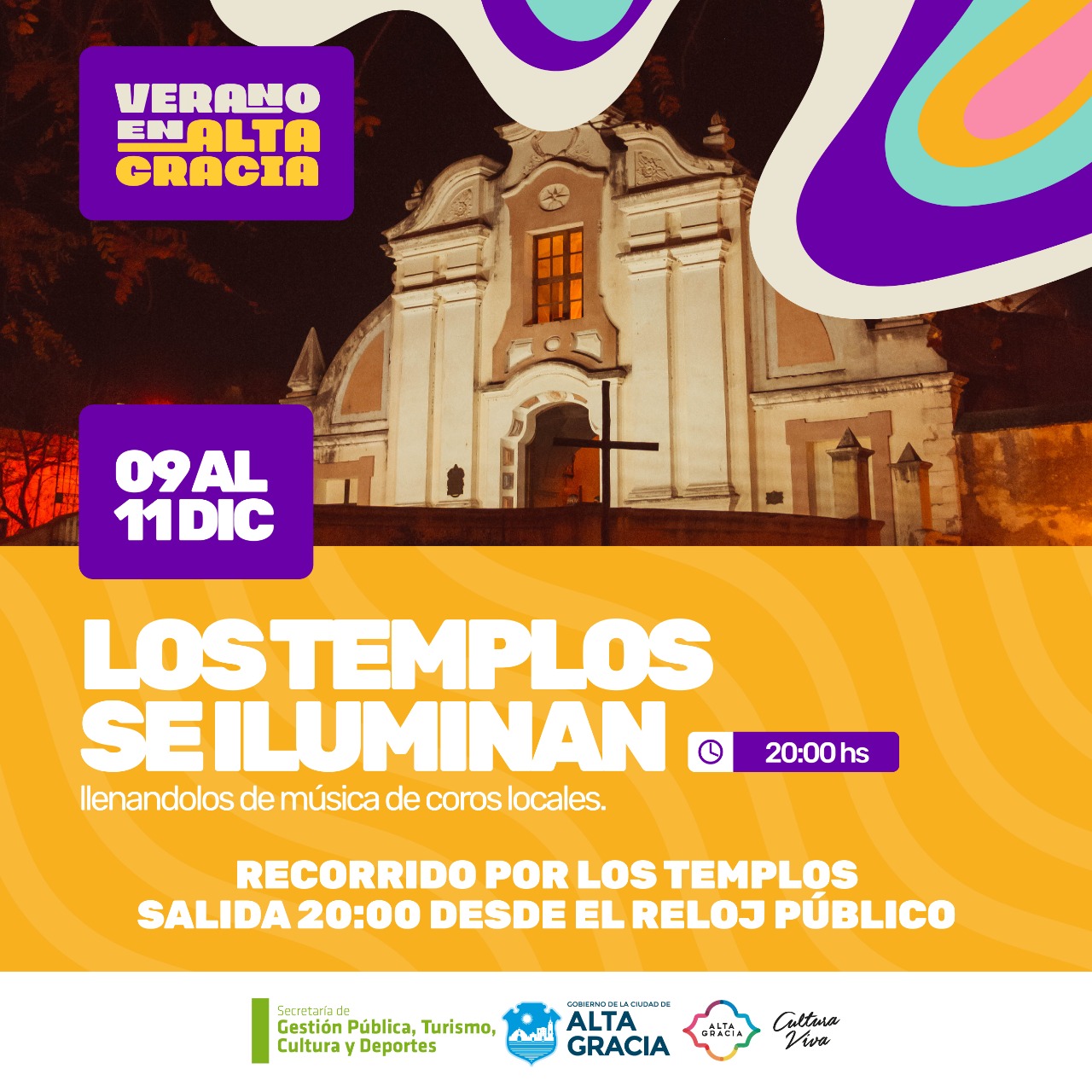 - Los templos se iluminan: Los diferentes templos e iglesias de nuestra ciudad abren sus puertas e iluminan sus espacios llenándolos de música con nuestros coros locales. Inicio del recorrido 20hs desde el Reloj Público.