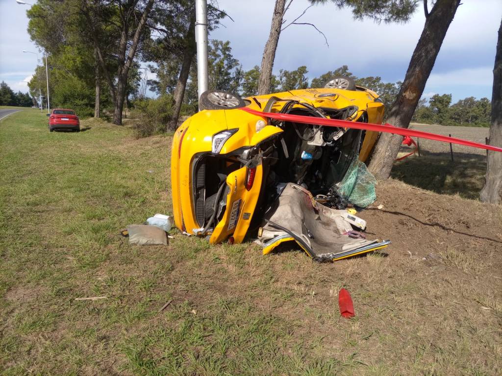 El accidente ocurrió a la altura del kilómetro 14, a pocos metros del monumento a Myriam Stefford, donde el Fiat Cronos en el que viajaban despistó y dio varios tumbos para terminar impactando contra un pino.