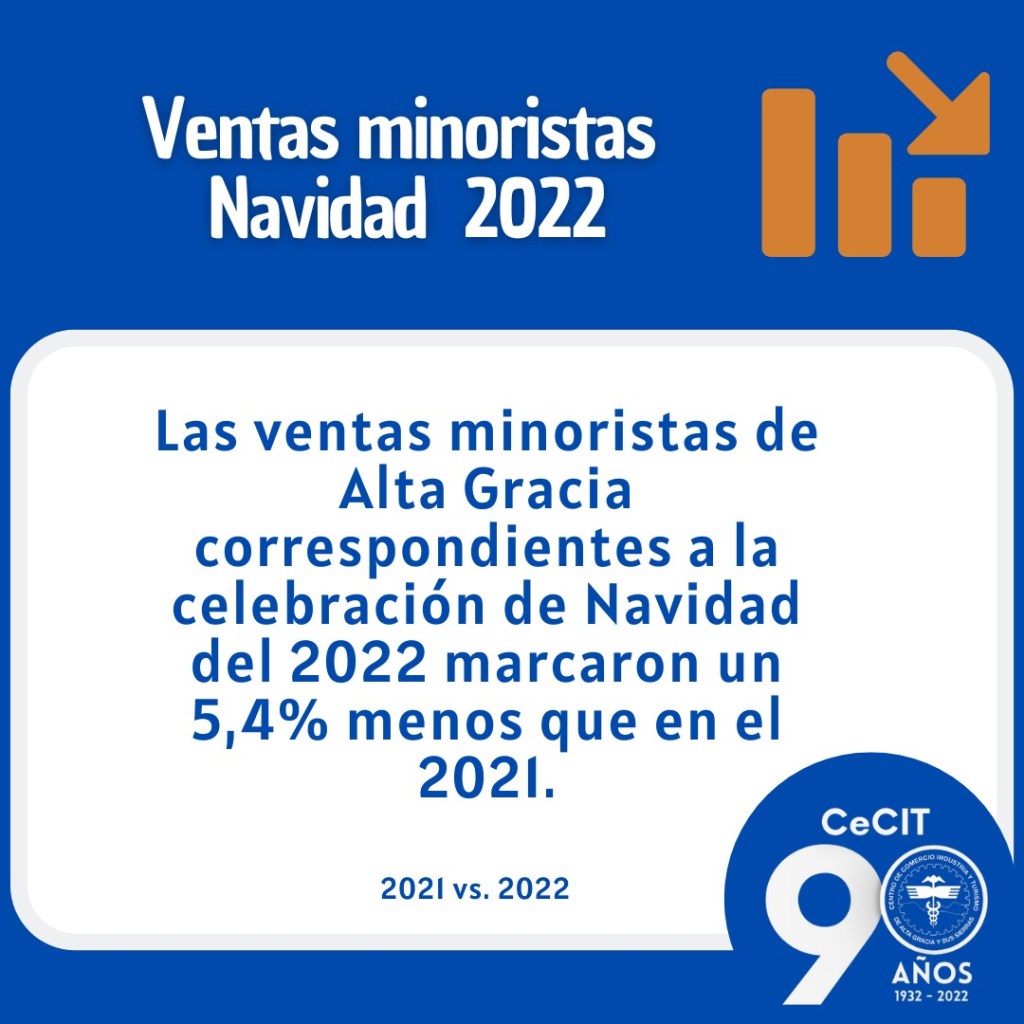Las ventas minoristas de Alta Gracia, correspondientes a la celebración de Navidad marcaron una caída del 5,46%, respecto al año anterior.
