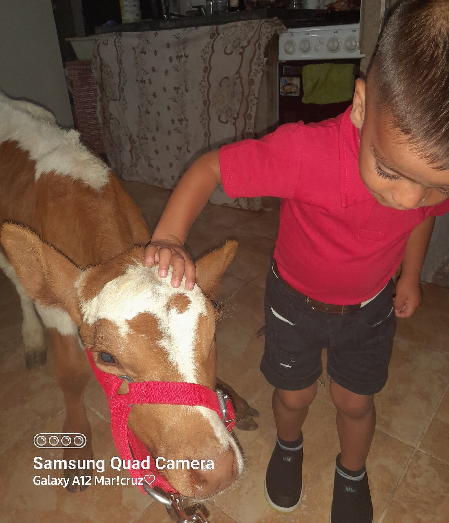 Jonás es un pequeño altagraciense de 2 años de edad, que recibió de regalo esta Navidad a «Lolita», una ternera overa colorada; la cual vino a cumplirle el anhelado sueño de tener un animal vacuno como mascota.