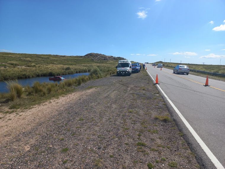 Por razones que se investigan, el vehículo despistó de la ruta y terminó en una laguna al costado del camino.