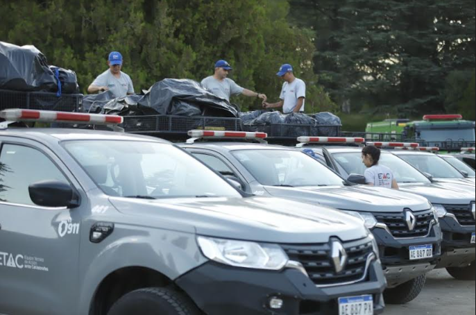 Efectivos y móviles del ETAC, partieron de Alta Gracia rumbo a Chile