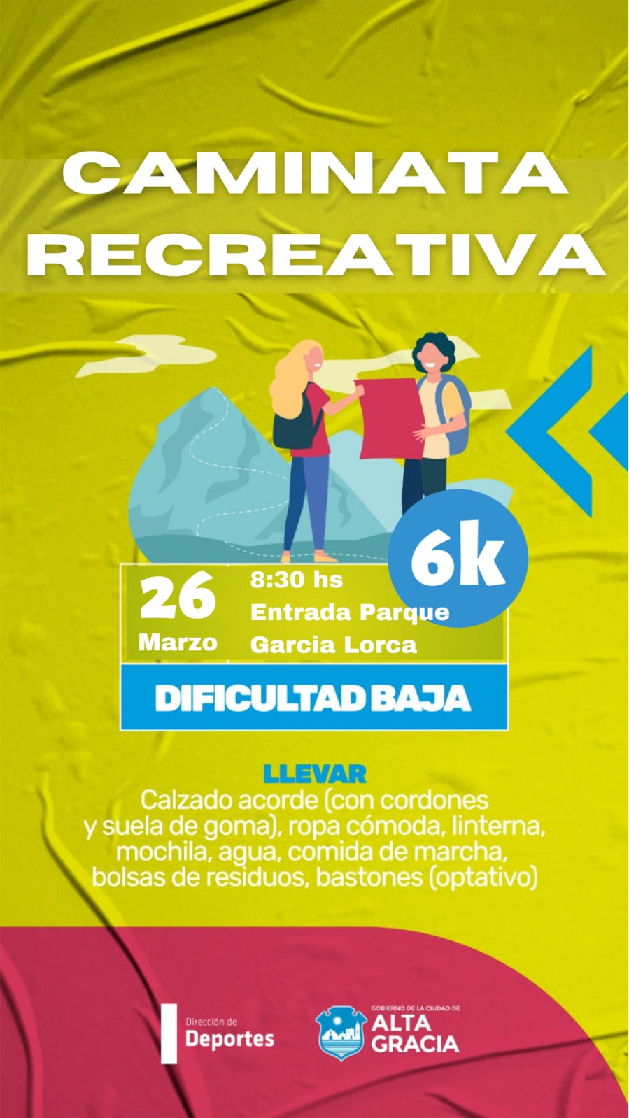 El Gobierno de la Ciudad de Alta Gracia, a través de la Dirección de Deportes, invita a la «Caminata Recreativa 2023» de dificultad Baja.