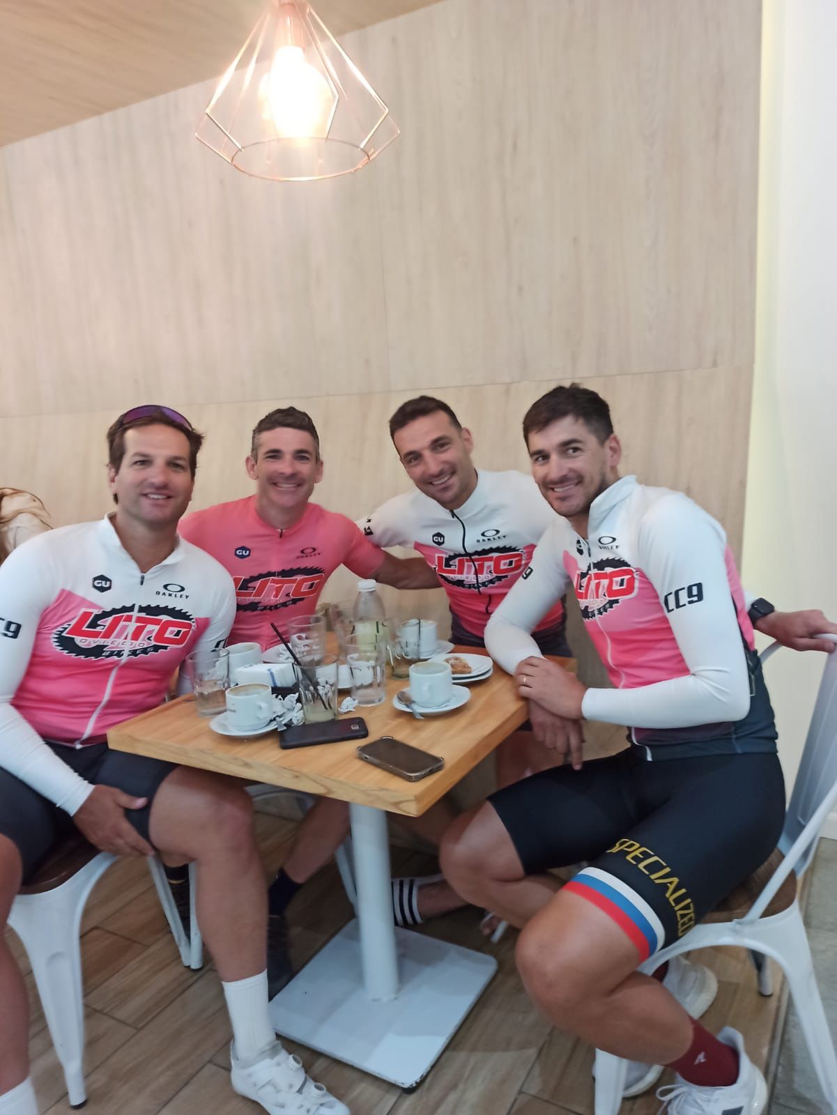 Pero «Lito» no fue solo, acompañado por dos de sus amigos y colegas «Luis Alem» y «Sebas Visconti» que juntos a «Lionel Scaloni» recorrieron con la indumentaria oficial de «litooviedobikes_» una cifra de 75km.