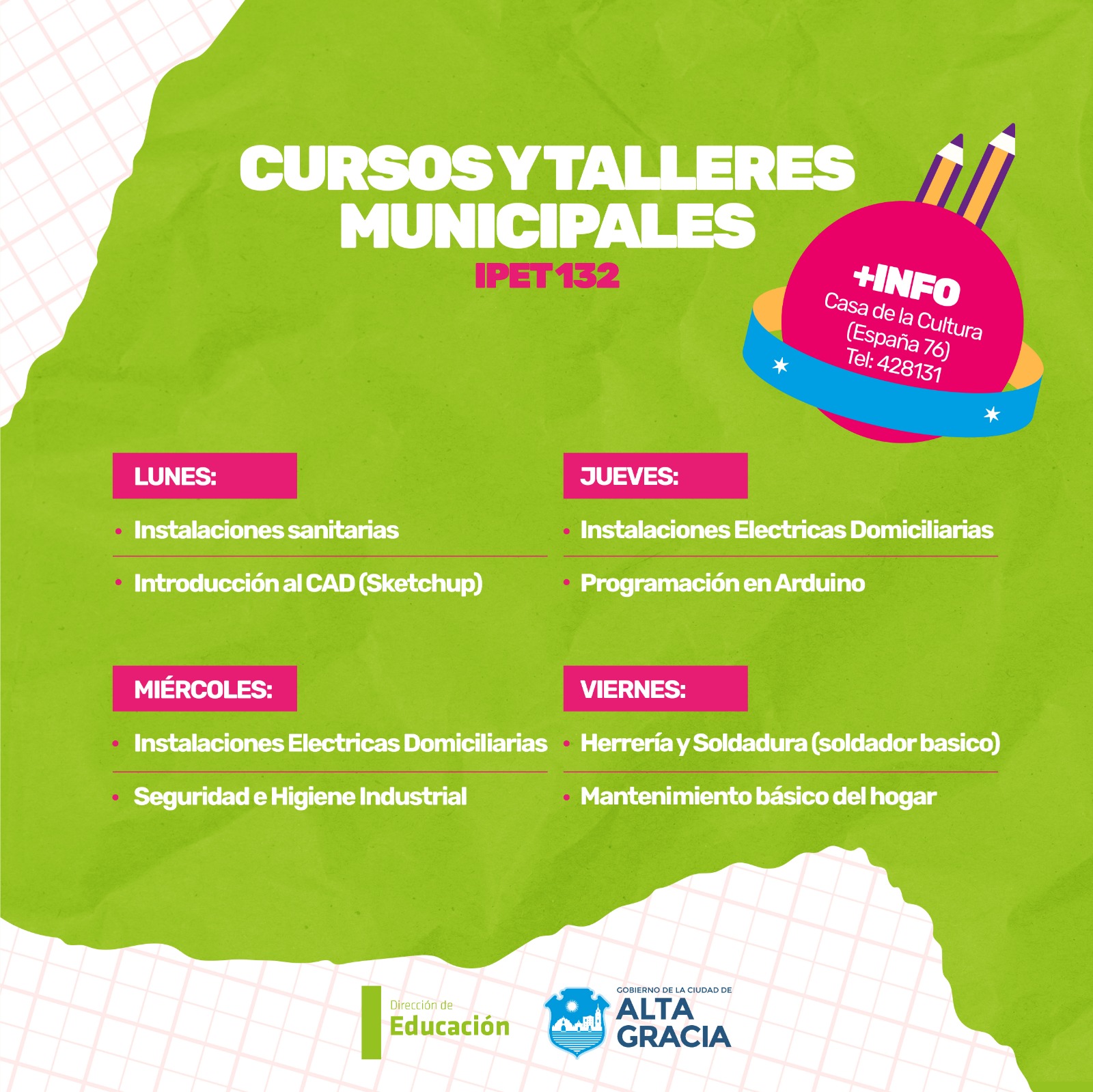 La Dirección de Educación, dependiente de la Secretaría de Gestión Pública del Gobierno de Alta Gracia, informa que a la oferta académica de más de 100 cursos y talleres, se suman 7 nuevas propuestas junto con el IPET 132 Paravachasca.