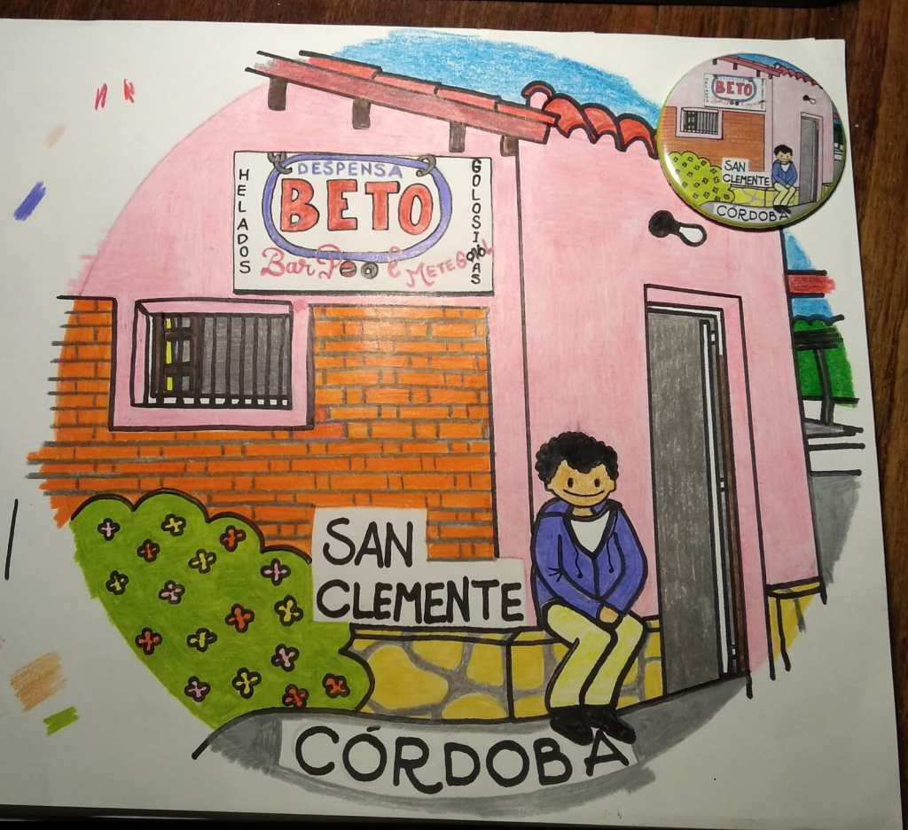 Es por ello que María realizó dibujos del río San José, de la Capilla de la Merced, de la ruta S-271 y del personaje más icónico de San Clemente, que no es otro que el querido «Beto» y con su negocio de fondo.