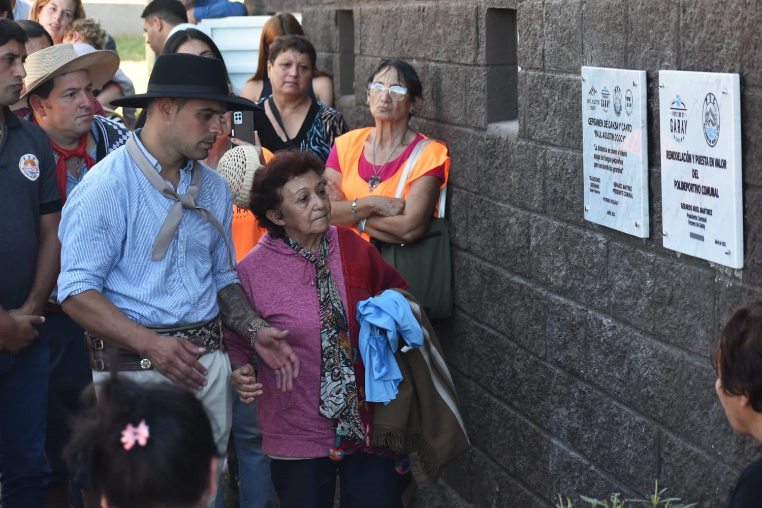 En la jornada inaugural, luego del desfile gaucho y las palabras alusivas de las autoridades, se vivió un momento de profunda emoción cuando Luisa Godoy, hermana de Raúl, en compañía del jefe comunal Gerardo Martínez, descubrió la placa que se colocó en el Polideportivo en nombre del Certamen de danza y canto «Raúl Agustín Godoy».