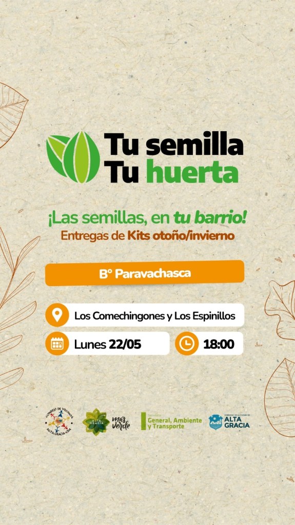 El Gobierno de la Ciudad de Alta Gracia informa que se está realizando en los barrios de la ciudad la entrega de kits de semillas para huerta familiar para la temporada otoño-invierno, en el marco del programa “Tu Semilla, Tu Huerta”, dependiente de la Secretaría General, de Ambiente y Transporte.