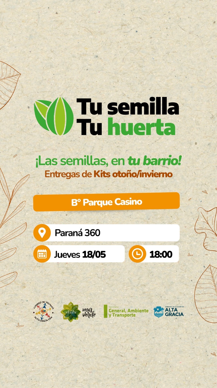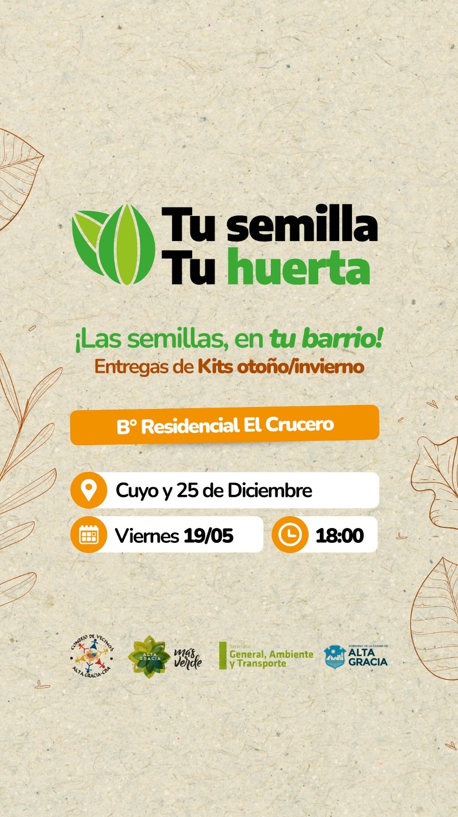 El Gobierno de la Ciudad de Alta Gracia informa que se está realizando en los barrios de la ciudad la entrega de kits de semillas para huerta familiar para la temporada otoño-invierno, en el marco del programa “Tu Semilla, Tu Huerta”, dependiente de la Secretaría General, de Ambiente y Transporte.
