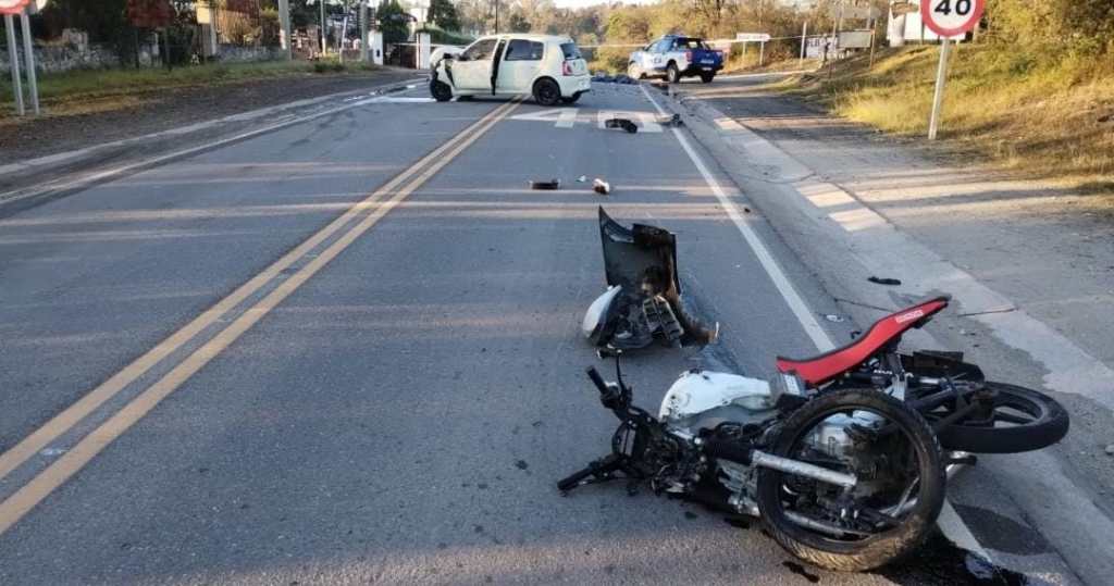 Según los informado por fuentes policiales, una motocicleta Honda Titan 150 cc conducida por un joven de 19 años oriundo de Villas Ciudad de América, colisionó con un automóvil Renault Clio conducido por un joven de 20 años y con domicilio en la ciudad de Alta Gracia.