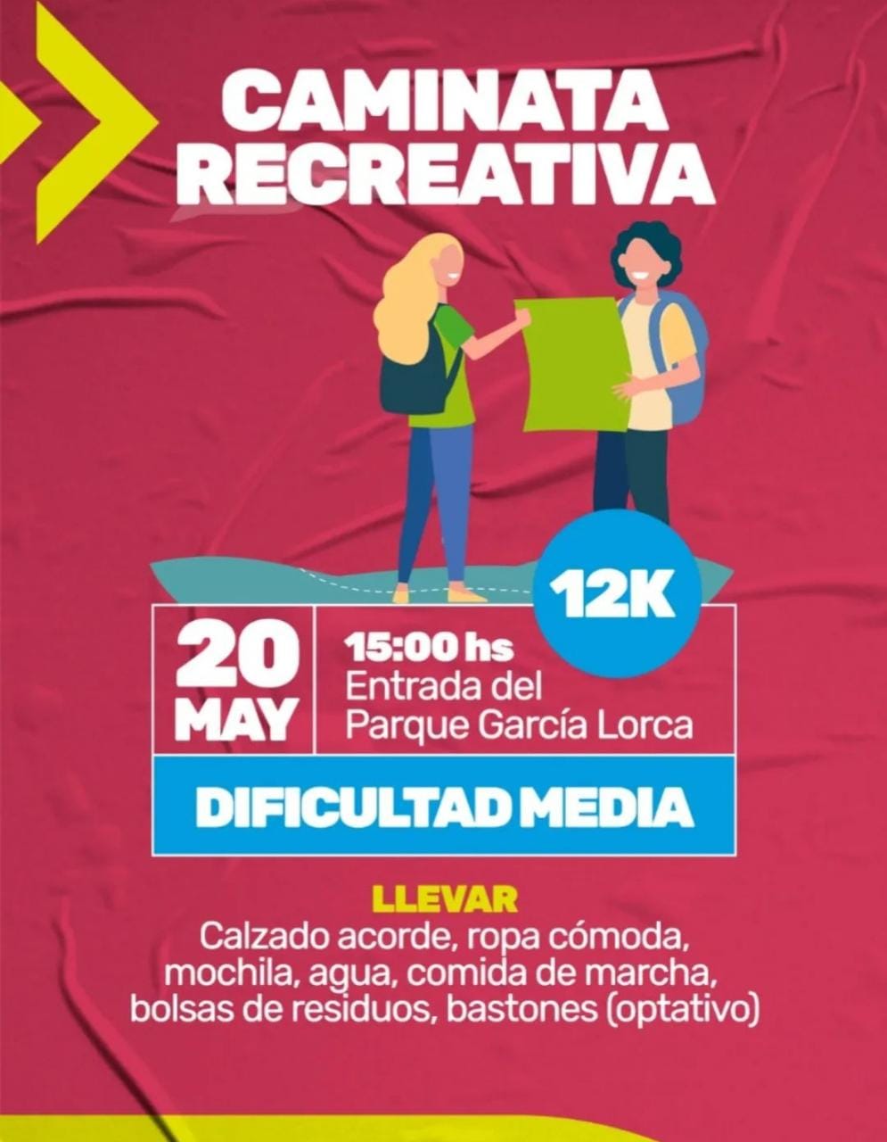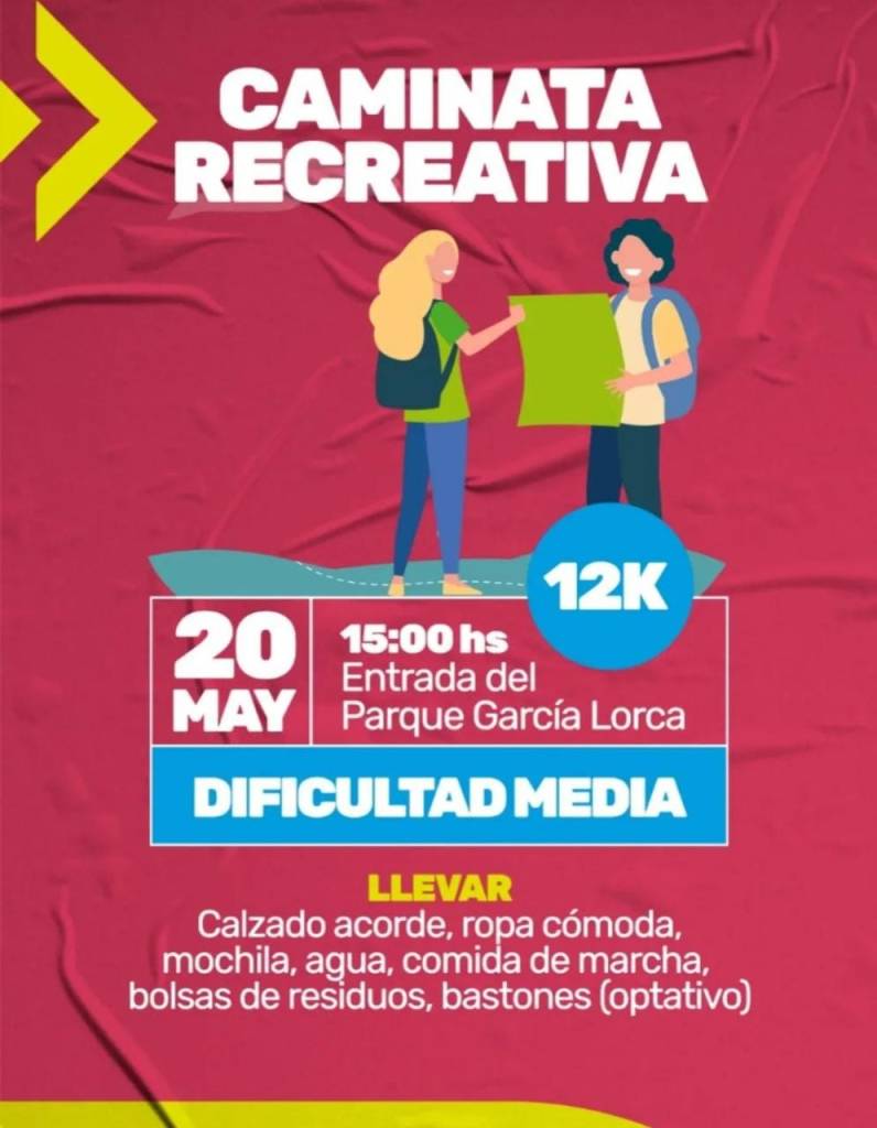 Finalmente, los amantes de la naturaleza y el senderismo también tendrán su lugar, con una nueva caminata recreativa. Se trata de una actividad de dificultad “media”, con un recorrido de 12 kilómetros. Se recuerda al público interesado asistir con calzado adecuado, ropa cómoda, mochila, agua para beber, comida de marcha, bolsas de residuo y bastón (opcional). La caminata partirá desde el ingreso al Parque García Lorca, el sábado 20 de mayo, a las 15hs.