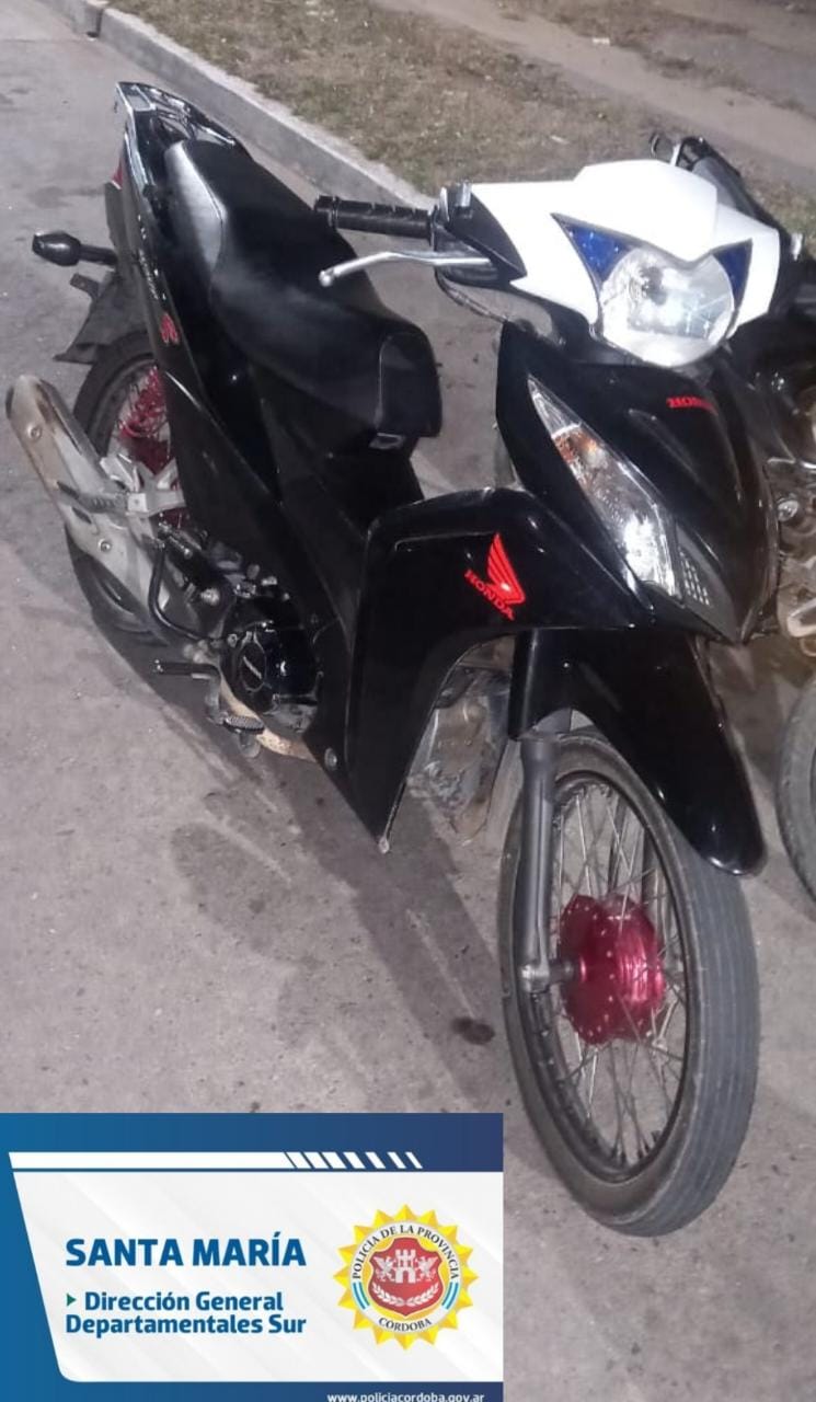 Horas más tarde, ya en la mañana de este lunes, el personal policial logró el recupero de una motocicleta Gilera Smash 110cc, que había sido sustraída en un domicilio de Barrio La Perla, alrededor de las 00:15.