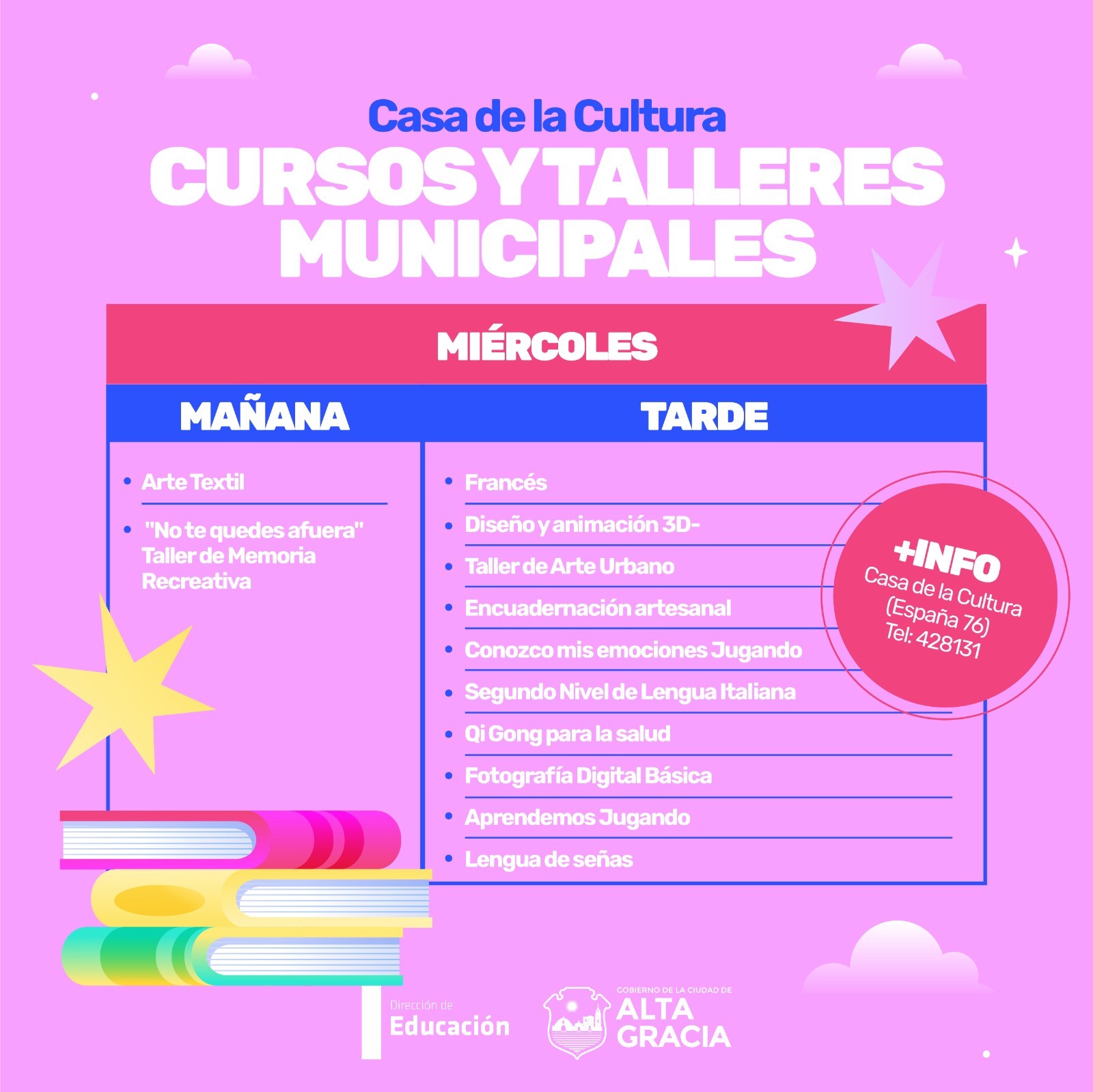 Para inscripciones y más información, dirigirse a Casa de la Cultura, España 76, de lunes a viernes de 8 a 13 hs.