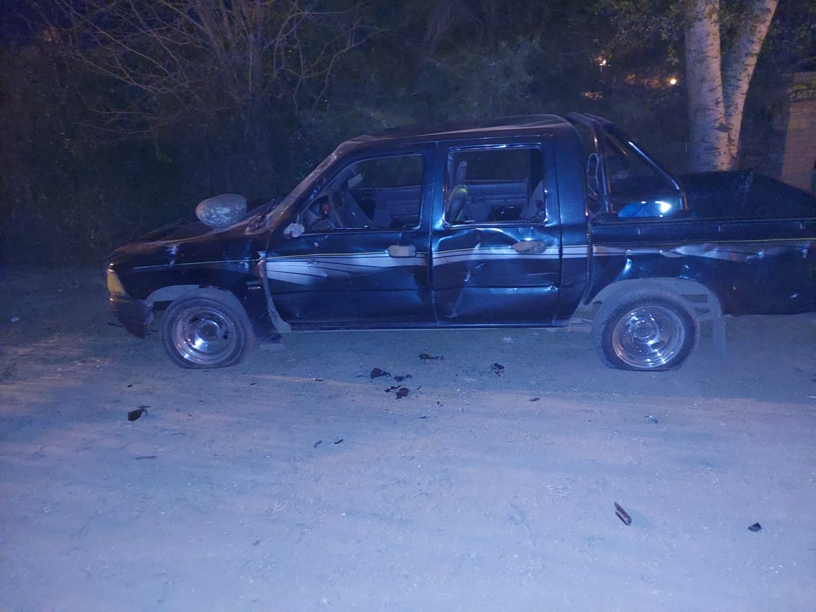 La Policía también procedió con el secuestro de una camioneta Toyota Hilux de color verde, en la que se conducían los sujetos, que también fue dañada por los habitantes de la zona.