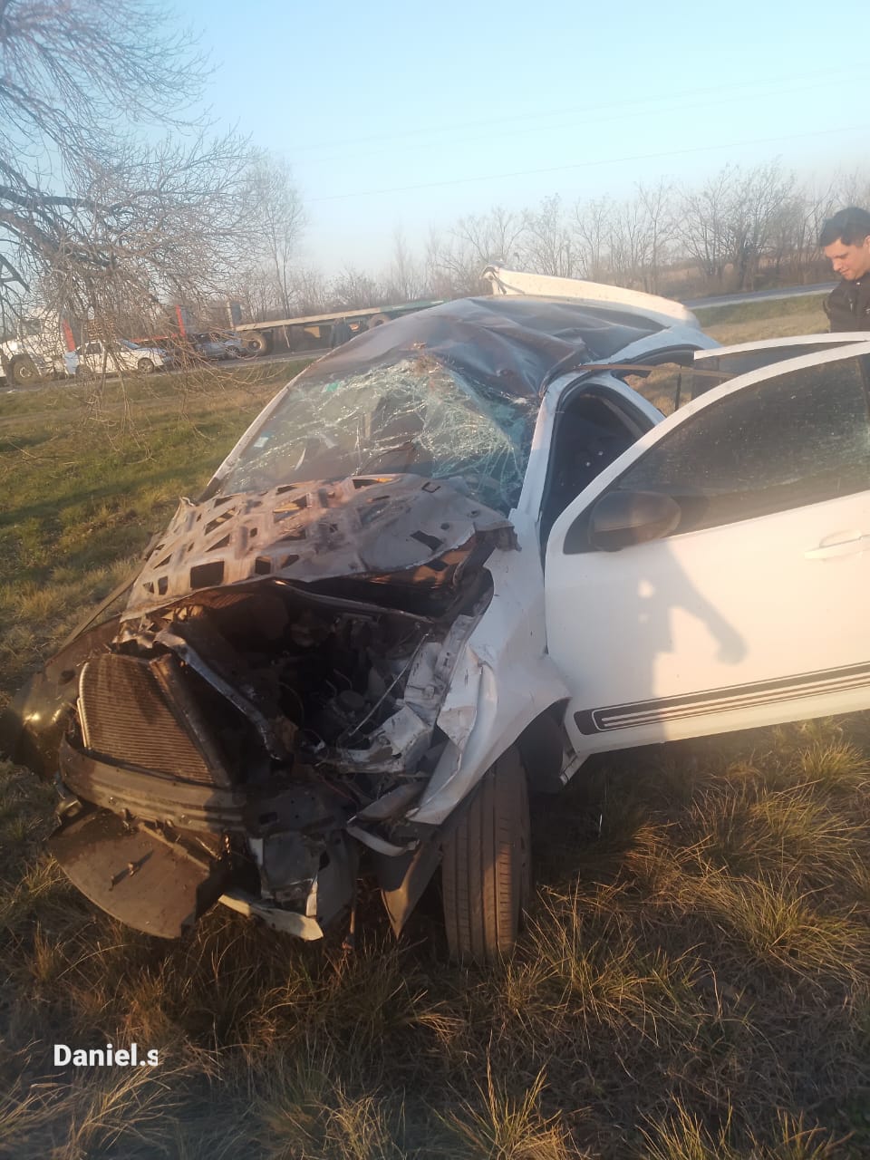 Los mismos, al percatarse de la presencia del móvil policial emprenden la huida por Ruta 5 en sentido sur, perdiendo el control del rodado a la altura del kilómetro 31 y dando varios tumbos.