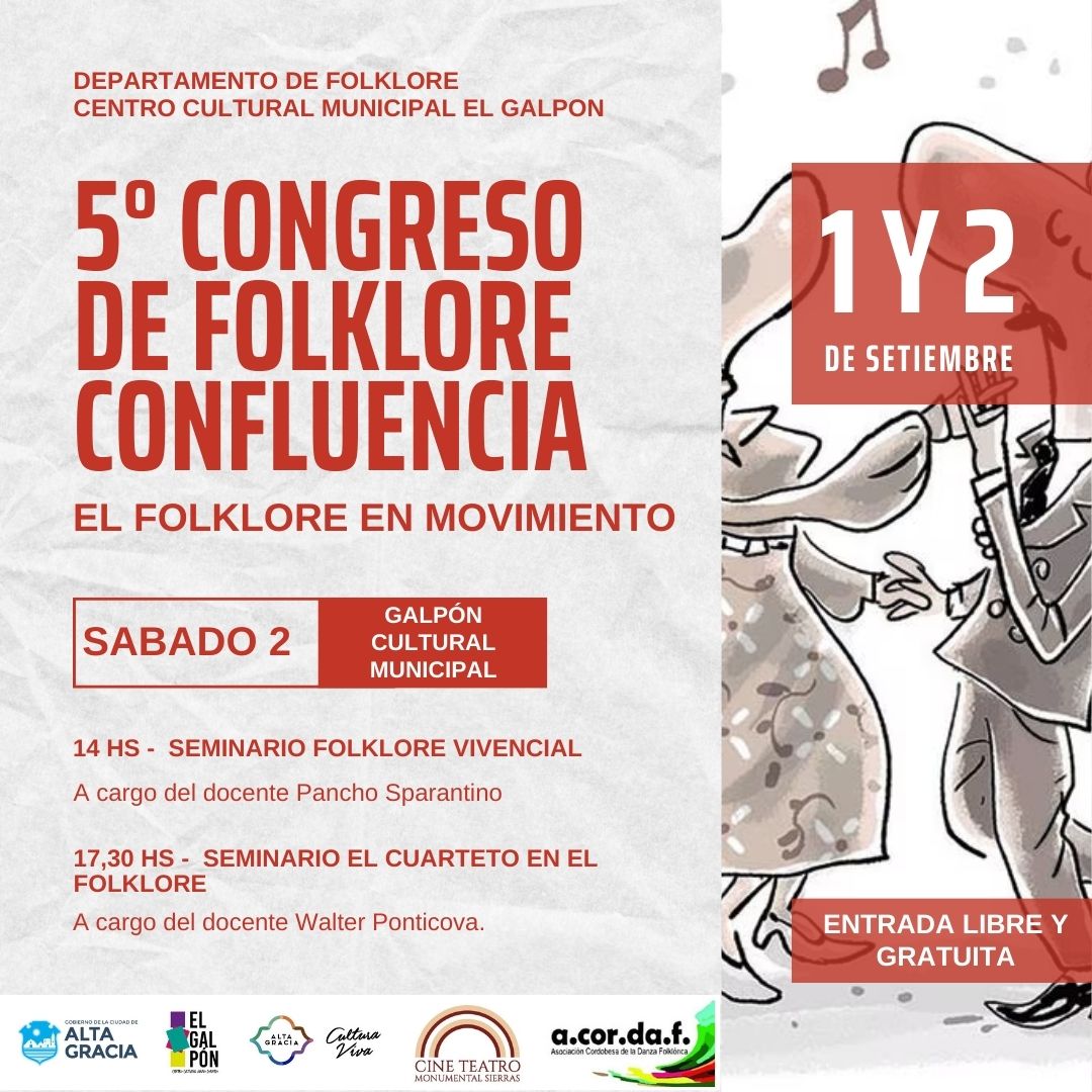 Los días 1 y 2 de septiembre, Alta Gracia será sede de la quinta edición del Congreso de Folclore “Confluencia: El Folklore en movimiento”.