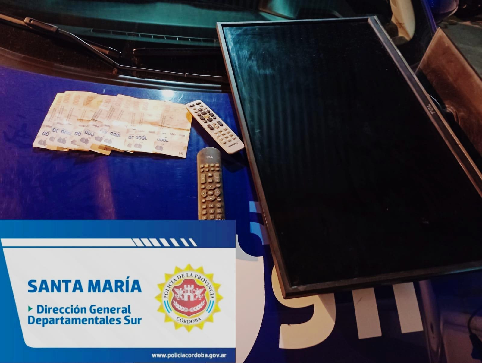 Ocurrió en horas de la noche de este miércoles en dicho barrio de Alta Gracia, donde dos hombres de 27 y 34 años de edad ingresaron a una vivienda por el patio trasero y sustrajeron un televisor y 10 mil pesos en efectivo.
