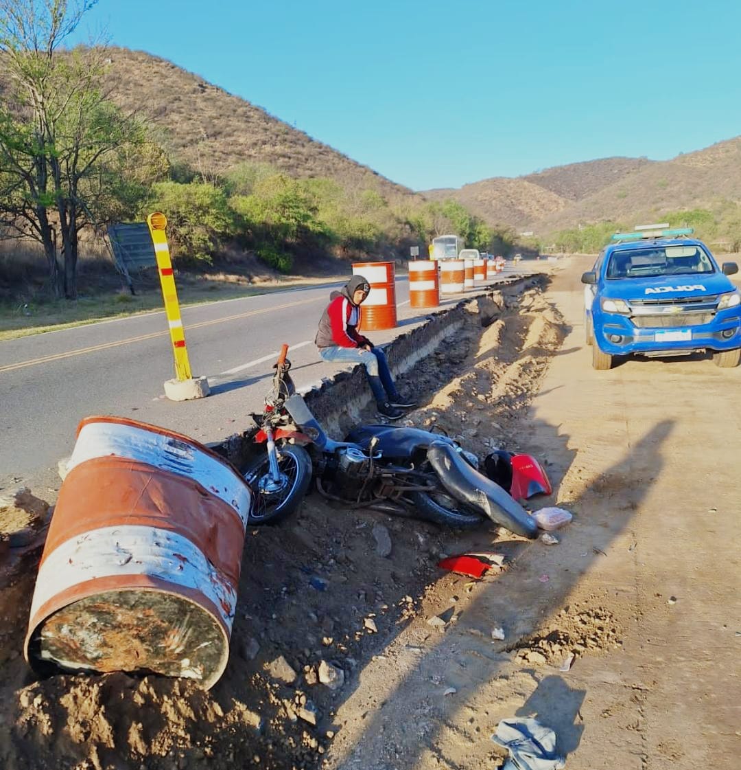 Según se constató, el conductor de una motocicleta Corven Energy, un joven de 24 años, perdió el control del rodado y terminó impactando contra un tacho de 200 litros, ubicado para señalizar el tránsito a razón de obras en la ruta.