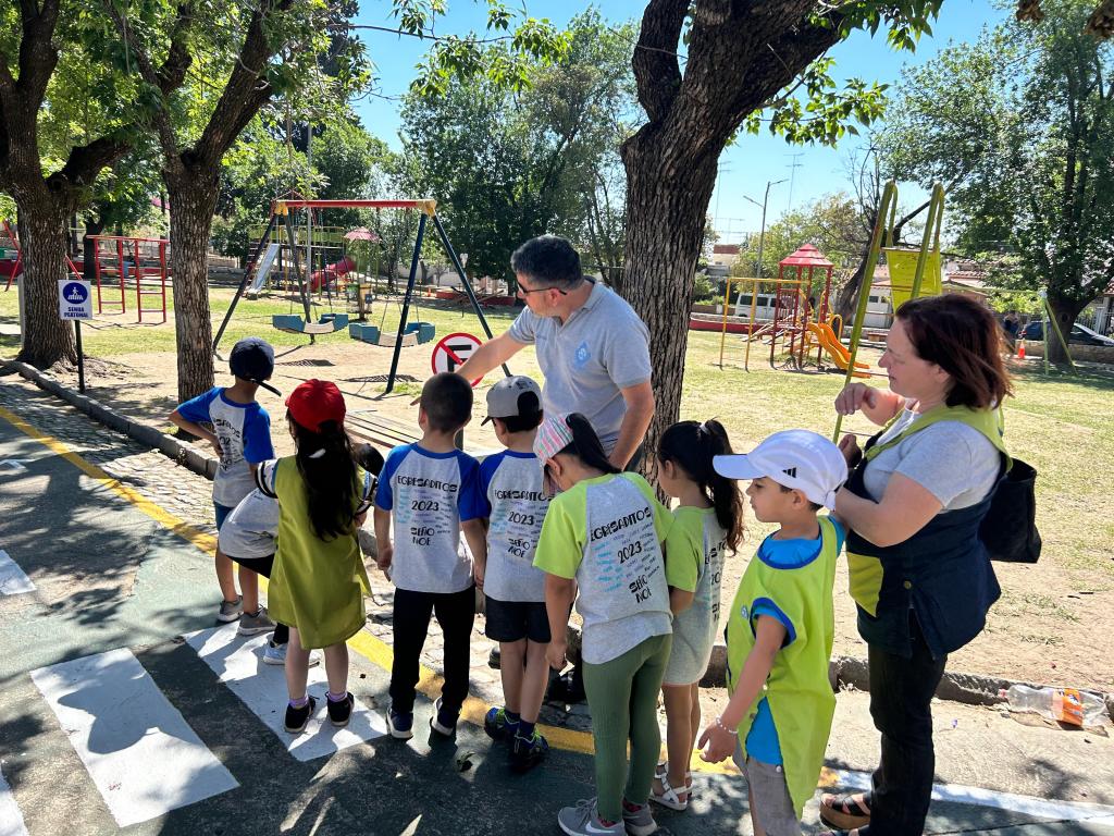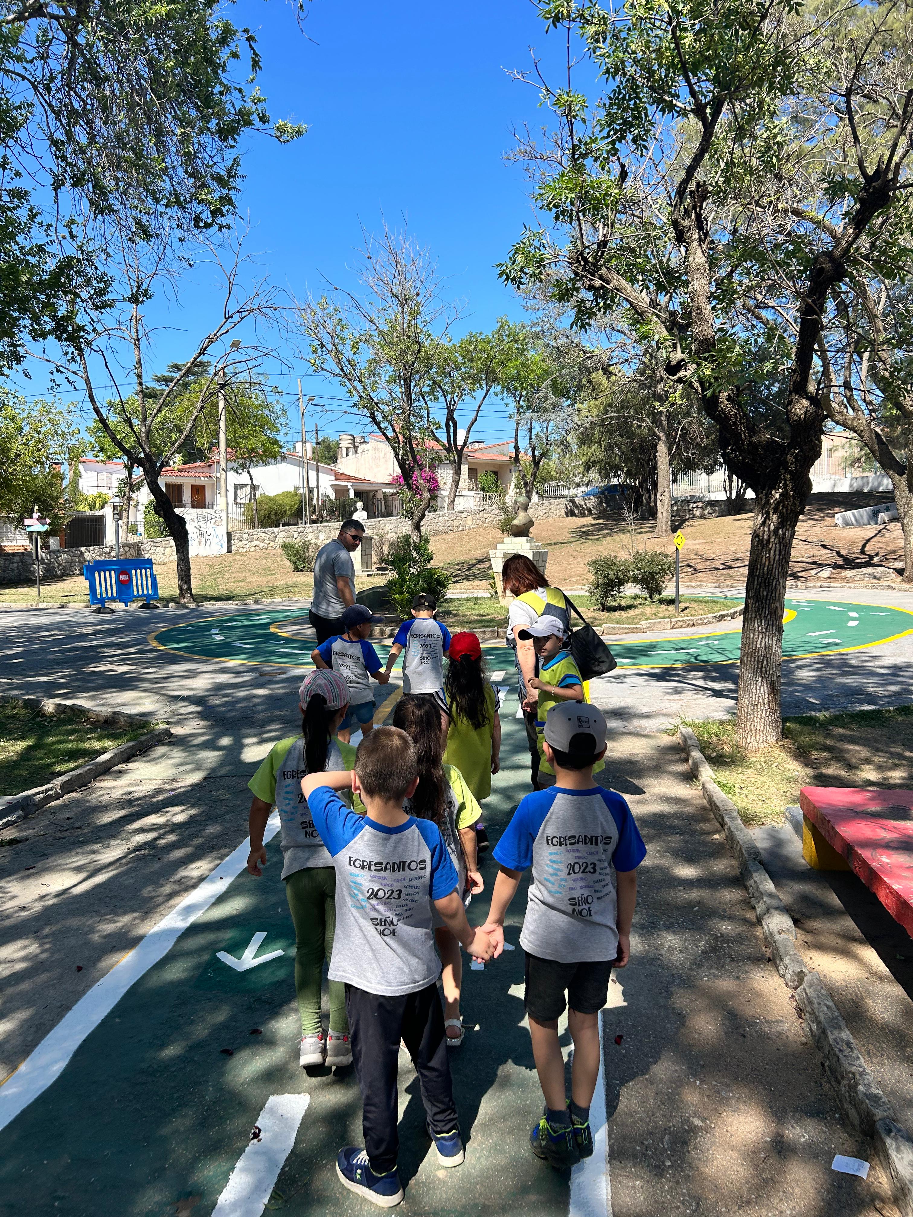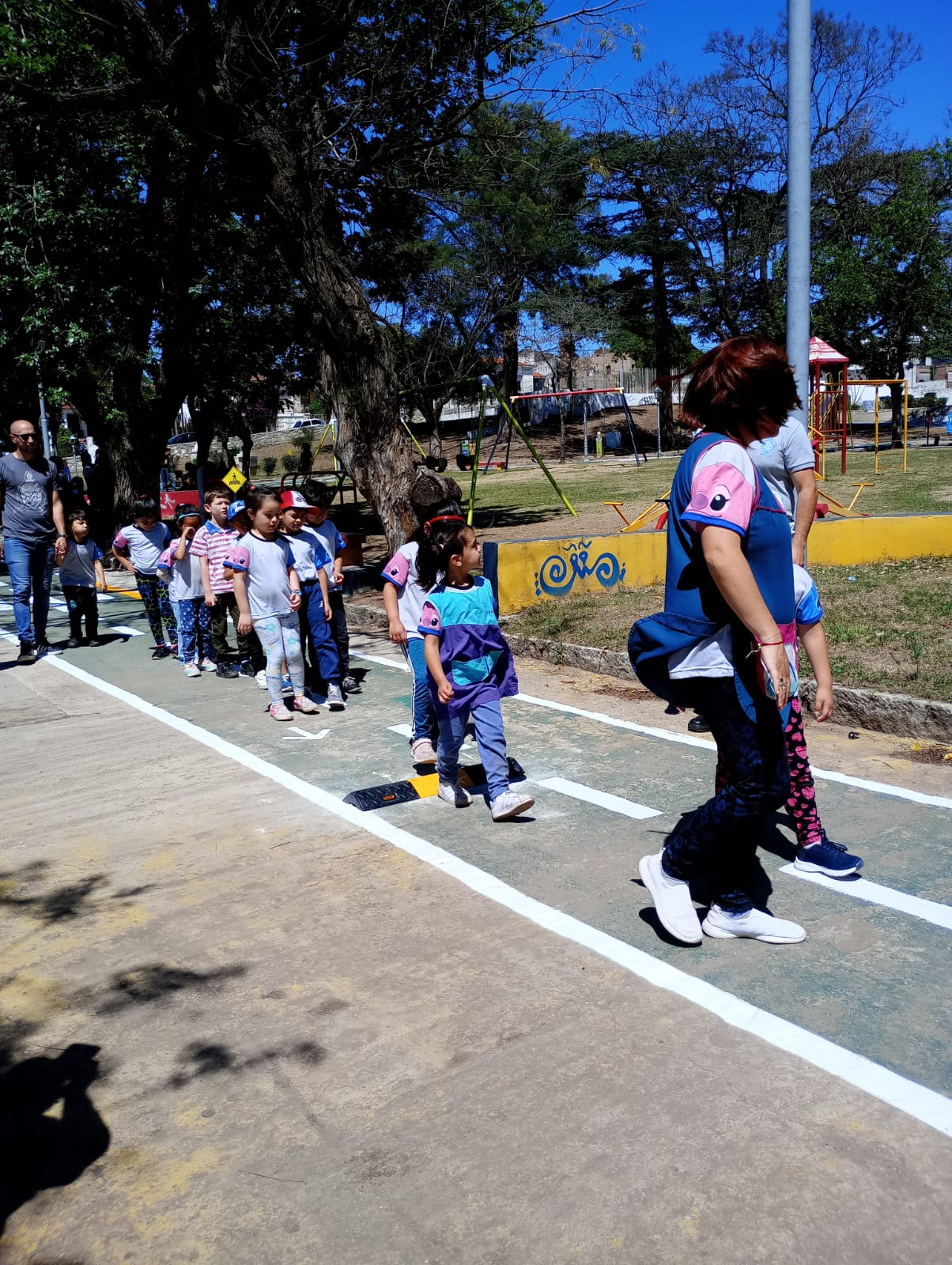 Para finalizar, los niños realizan un recorrido por el Circuito Vial del Parque Infantil, representando tanto a peatones como vehículos, para poner en práctica todo lo aprendido en esta divertida experiencia educativa.