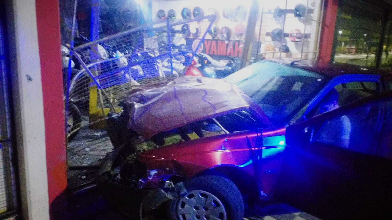 Perdió el control del auto y terminó contra una concesionaria de motos
