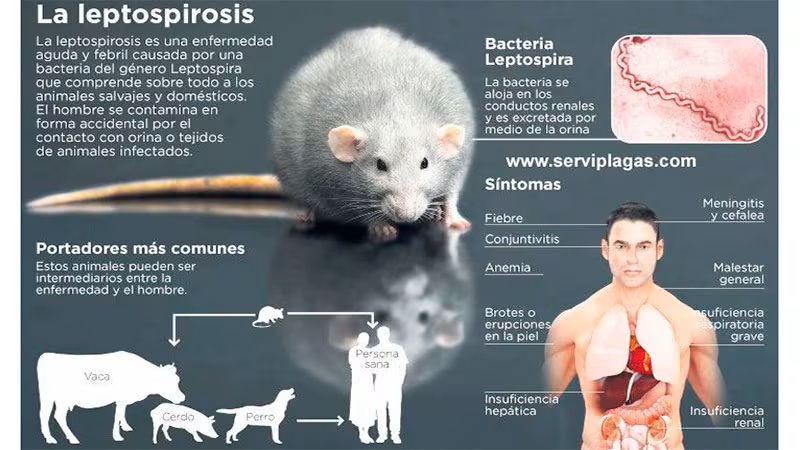 La enfermedad, causada por una bacteria presente en la orina de ciertos animales, se transmite principalmente por contacto directo con la orina infectada o por ingestión de alimentos y agua contaminados.