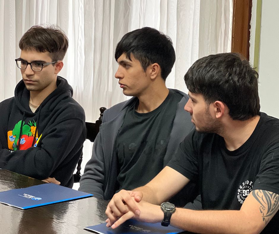El Intendente de Alta Gracia, Marcos Torres, junto al Secretario de Comercio, Industria y Modernización del Estado, Maximiliano Caminada, y el Subsecretario de Desarrollo Emprendedor y Comercio, Manuel Ortiz, recibieron a un nuevo grupo de jóvenes que comenzarán sus prácticas laborales en distintas empresas y comercios de la ciudad, en el marco del programa Primer Empleo Municipal (PEM).