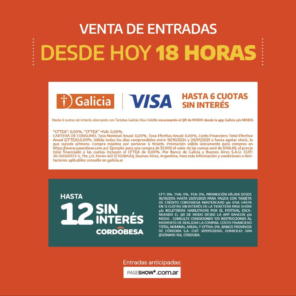 Vale recordar que la venta de entradas comienza este mismo miércoles en las boleterías del anfiteatro sobre calle Cleto Peña en el horario de 18 a 21.