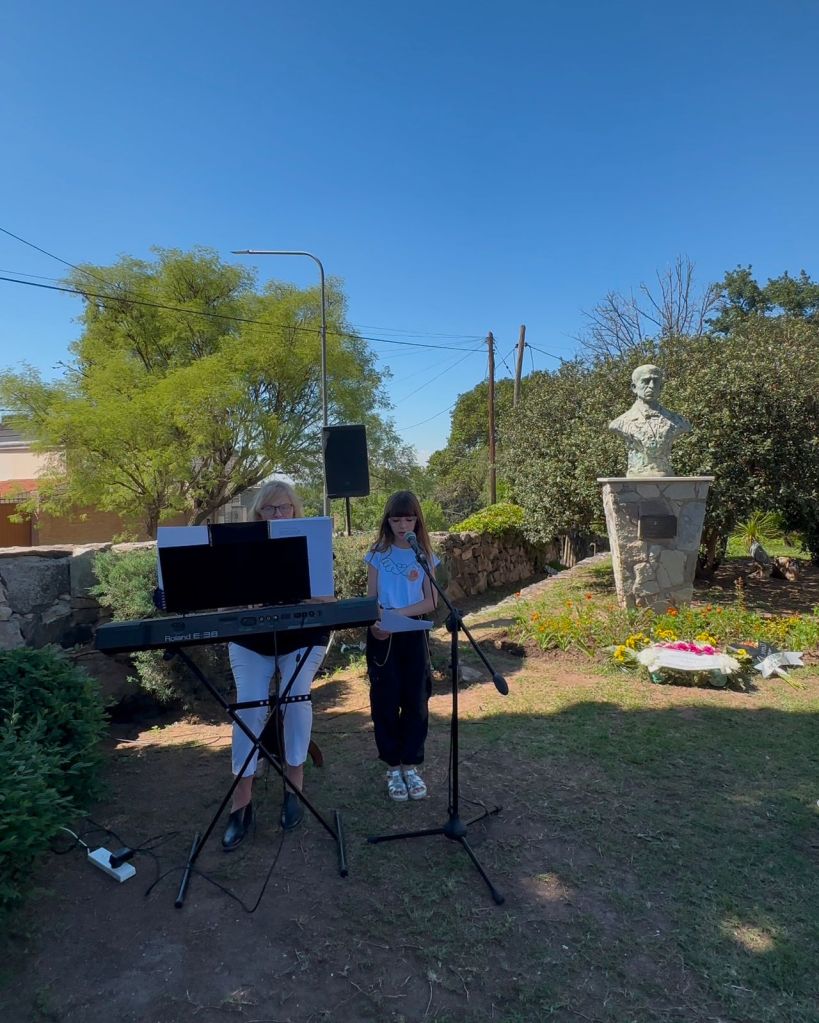 A su turno, la directora del Conservatorio Renovatorio Privado de Música Manuel de Falla, Ema Teresita Wall, junto con la pequeña cantante Matilde Franco, compartieron una composición propia de Wall en homenaje al maestro.