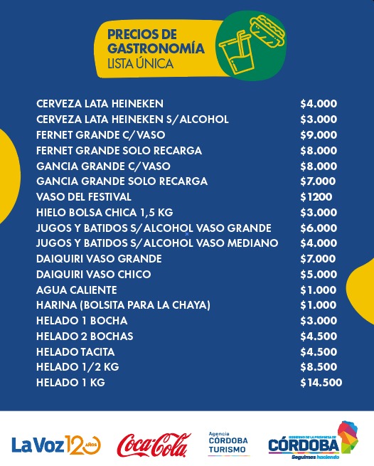 El Festival Nacional de Doma y Folklore de Jesús María está a punto de iniciar y la organización ha dado a conocer los precios de alimentos y bebidas que estarán en el Anfiteatro José Hernández durante las 12 noches de color y coraje, con «valores uniformes» y una buena variedad de opciones.