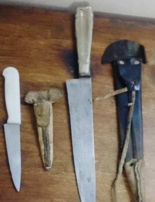 Al momento de realizarle el palpado preventivo al joven, se detectó la portación en su cintura de dos elementos punzocortantes, más precisamente de dos cuchillos.