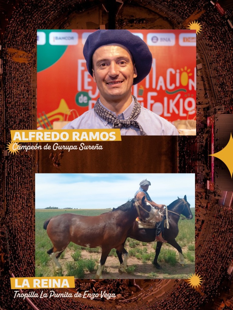 También se presentará Tato Ramos, campeón de grupa, quien montará a «La Reina», una yegua de gran proyección y hermana de “El Coronel”, perteneciente a la misma tropilla. La combinación anticipa una monta de alto nivel dentro de su categoría.
