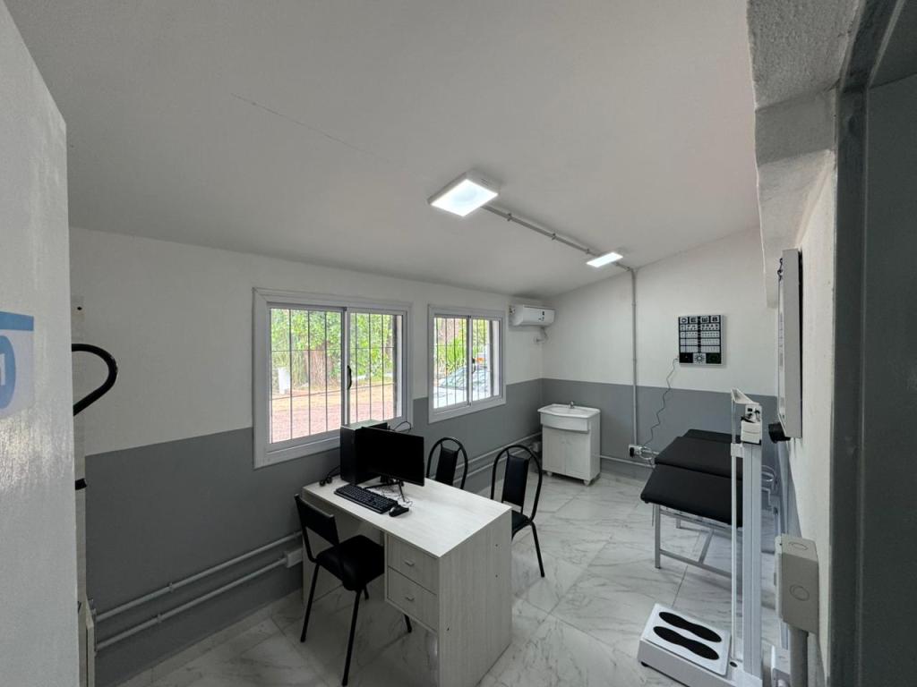 Se creó un nuevo ingreso con galería de acceso y veredas perimetrales; sala de recepción y espera; tres consultorios (uno de ellos equipado para un sillón odontológico); una sala de enfermería; baños accesibles; sector para el personal y área de depósito.