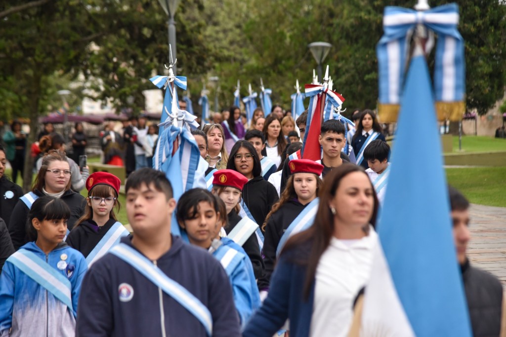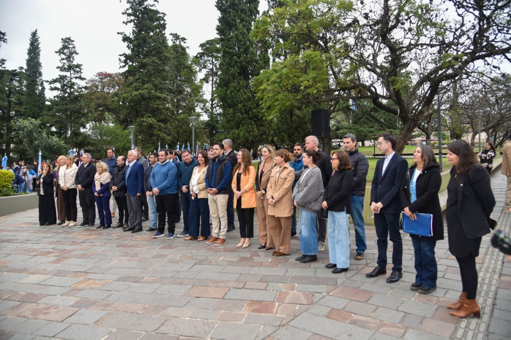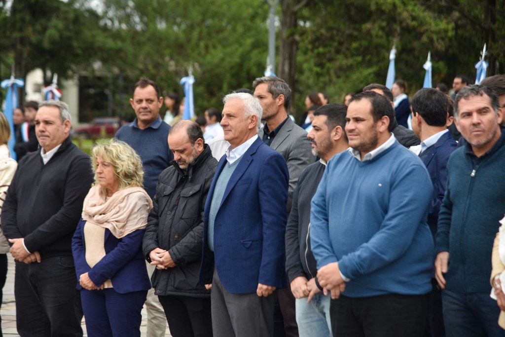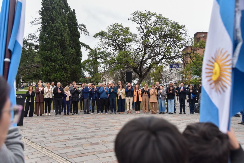 El acto estuvo encabezado por el Viceintendente a cargo del Departamento Ejecutivo, Jorge De Nápoli; acompañado por integrantes del Honorable Concejo Deliberante y Tribunos de Cuentas, instituciones intermedias, sindicatos, fuerzas de seguridad y escuelas de la ciudad con sus abanderados que, junto a vecinas y vecinos, se reunieron para conmemorar esta importante efeméride tan cercana al corazón de cada vecino de Alta Gracia.