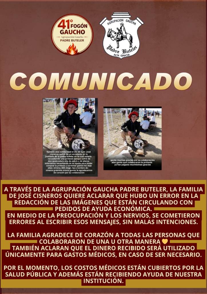 La comisión de la Agrupación Gaucha Padre Buteler ha estado presente en todo momento junto a los jinetes y sus familias, brindando acompañamiento, apoyo y seguimiento constante de los informes médicos.