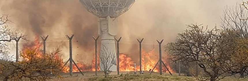 Actualmente la situación está controlada y en guardia de cenizas, pero por momentos el fuego rodeó las instalaciones del Centro Espacial Teófilo Tabanera, en Falda del Cañete.